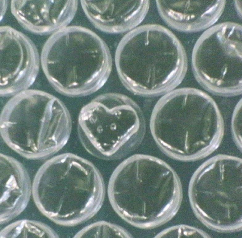 梱包用のプチプチには数万個に1個ハート型のものがあるという。
